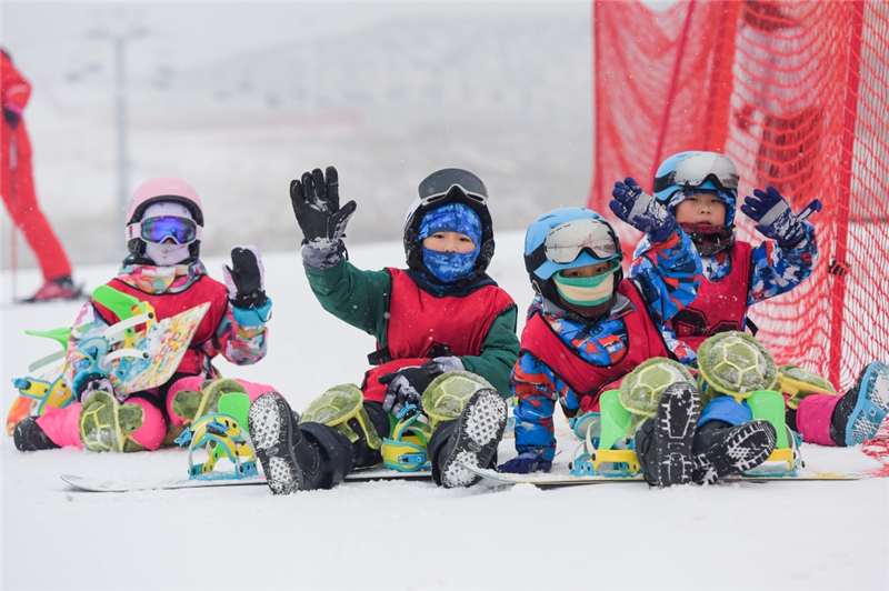 1月21日,小朋友在内蒙古乌兰察布市大河湾滑雪场体验滑雪。新华社记者 李志鹏 摄