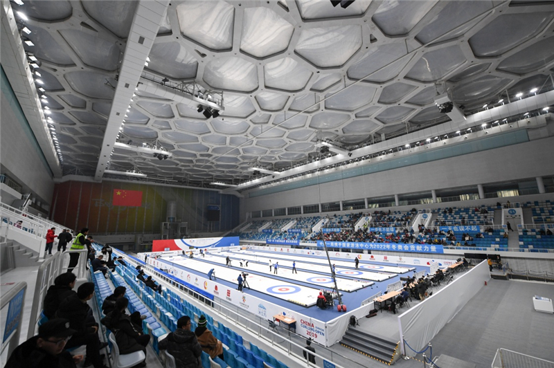 2019年12月8日,观众在“冰立方”观看中国青少年冰壶公开赛女子冰壶决赛。新华社记者 鞠焕宗 摄