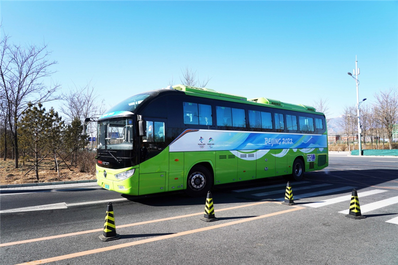 1月17日,氢燃料新能源车准备驶入北京2022年冬奥会和冬残奥会延庆停保中心场站。新华社记者 任超 摄