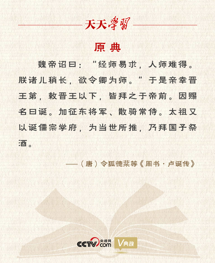 “经师易求,人师难得”语出《周书·卢诞传》,意思是找一个只是传授经学知识的老师很容易,找一个教你怎么做人且以自己的行为加以示范的老师却很难。