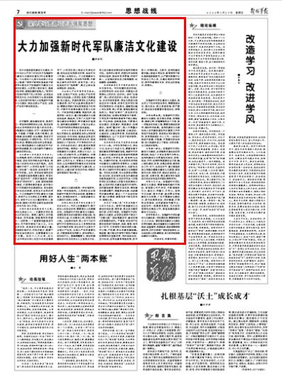 大力加强新时代军队廉洁文化建设