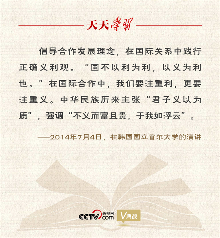21世纪是合作的世纪。面向未来,中国将坚持走共同发展道路,积极践行正确义利观,弘义融利,继续按照亲、诚、惠、容的理念,深化同周边国家的互利合作,努力使自身发展更好惠及周边国家,扩大同各国的利益汇合点,推动建设相互尊重、公平正义、合作共赢的新型国际关系。