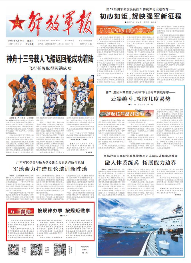 来源:中国军网-解放军报 作者:李光辉 责任编辑:杨凡凡