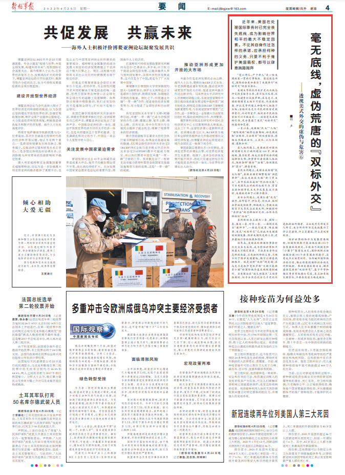 美国主导的北约东扩是此次俄乌冲突的直接导火索,其不仅不反思,反而一味谴责打压俄罗斯;在乌克兰,美国标榜国家主权不可侵犯,而在南联盟、伊拉克等问题上却高呼人权高于主权;宣扬对乌克兰平民的伤害是战争罪行,而对阿富汗、叙利亚平民的伤害就可以不被追究……这些毫无底线的行径,充分暴露了美式“双标外交”的虚伪和荒唐。