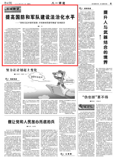习主席在党的十九大报告中指出,要“提高国防和军队建设法治化水平”。在出席十三届全国人大五次会议解放军和武警部队代表团全体会议时,习主席再次强调,依法治军是我们党建军治军的基本方式,是实现党在新时代的强军目标的必然要求。要贯彻依法治军战略,提高国防和军队建设法治化水平,为推进强军事业提供坚强法治保障。