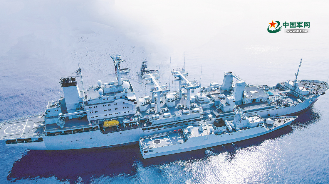 近日,海军某支队数艘舰艇组成训练编队,在南海某海域开展高强度、多课目海上综合作战支援演练。