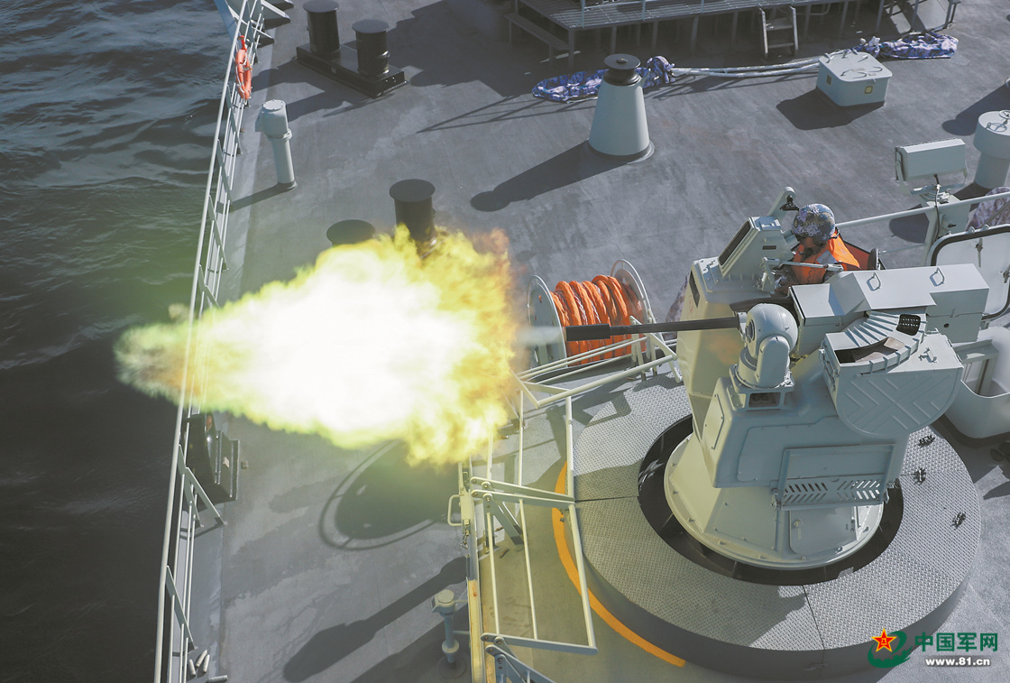 火炮对海射击。