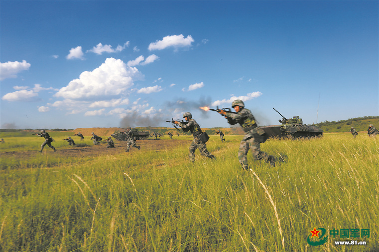 红方官兵向蓝方阵地发起进攻。李兴超摄