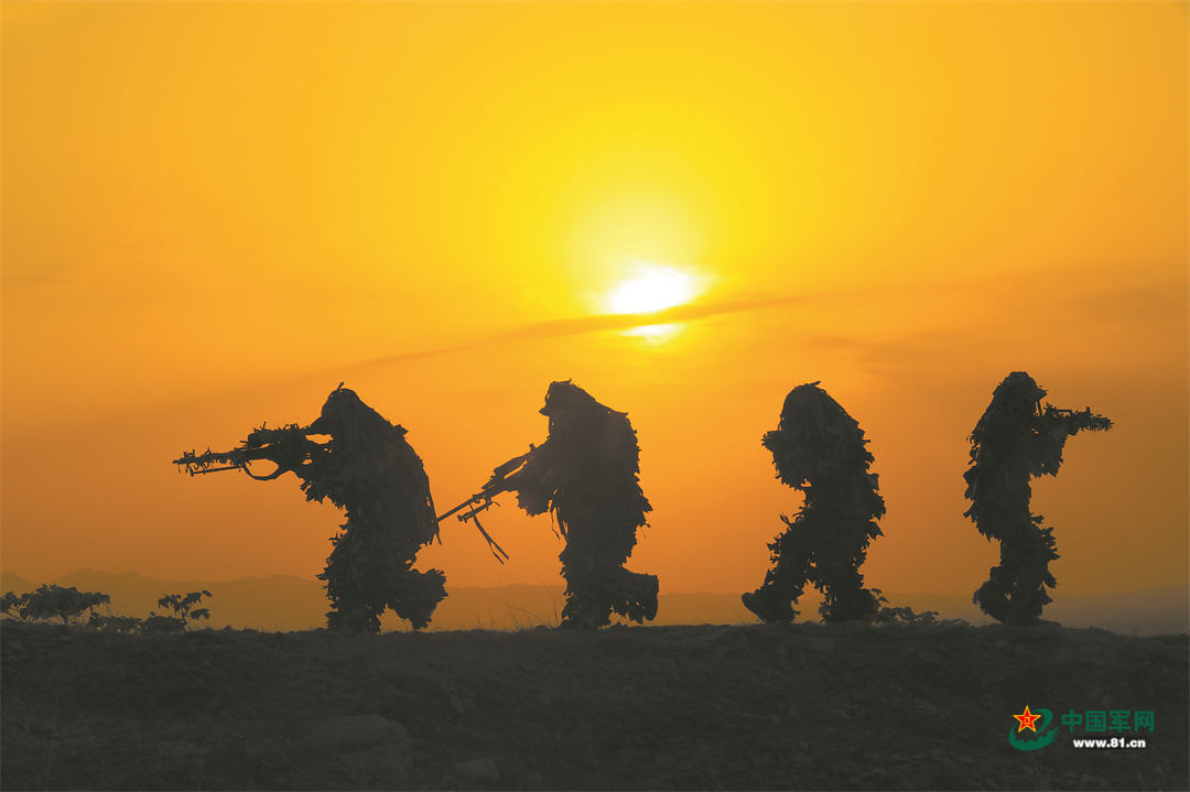 天色渐晚,演练仍在进行。此时,在野外训练已达10多个小时的官兵,体力消耗严重。大家来不及休整,迅速检查夜视装备和伪装器材,准备借暗夜掩护,对“敌”目标实施狙杀行动。