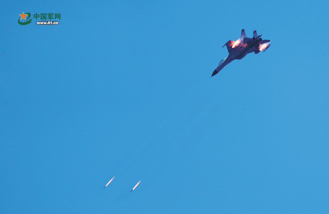 5月30日,海军航空兵某旅组织战机进行大场次、高强度实弹射击训练,检验飞行员对海上目标精确打击能力。