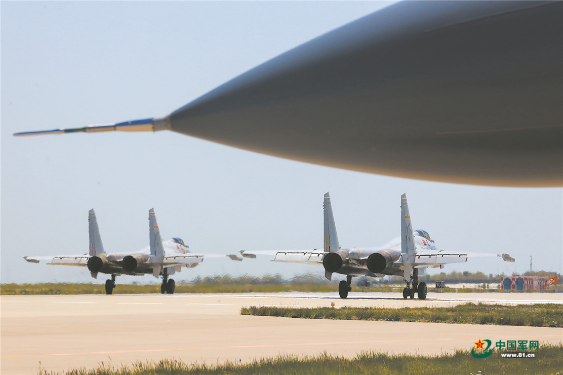 炎炎夏日,渤海之滨某机场战机列阵,引擎轰鸣。