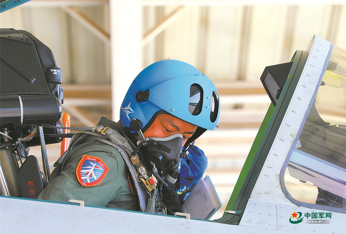 飞行员认真做好起飞前准备。