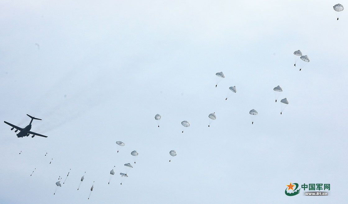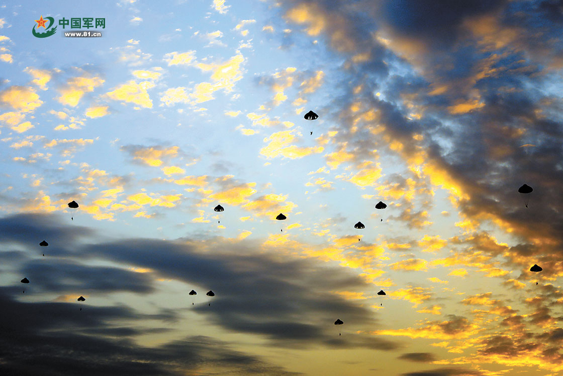 夜幕降临,满载伞兵的数架大型运输机再次升空。面对漆黑夜空,官兵们勇敢跃出机舱,借助夜视器材迅速判明方向,精准选择着陆区域……