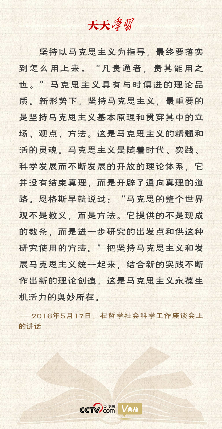 马克思主义具有鲜明的实践品格,不仅致力于科学“解释世界”,而且致力于积极“改变世界”。在哲学社会科学工作座谈会上,习近平总书记强调,坚持以马克思主义为指导,最终要落实到怎么用上来。