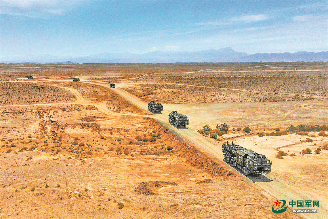 经过铁路输送,部队抵达预定地域。官兵完成装备卸载后,按要求向作战地域快速机动,演练随即打响。