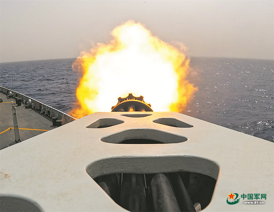 炎炎夏日,亚丁湾东部某海域云飞浪卷,海天一色。正在执行护航任务的海军第41批护航编队,在这里展开一场多单元协同训练,检验武器装备在高温、高湿、高盐环境下使用效能,锤炼编队应急指挥和火力打击能力。