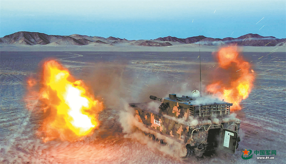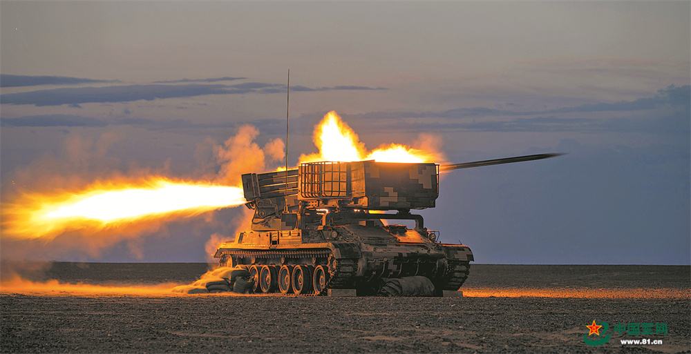 夜色中,无人机抵近进行空中侦察,将目标坐标回传至炮兵指挥车。射击参数随即下发至各炮火控系统,火箭炮分队和榴炮分队快速装定诸元。“预备,放!”指挥员一声令下,一发发炮弹呼啸而出,对“敌”阵地展开火力打击。