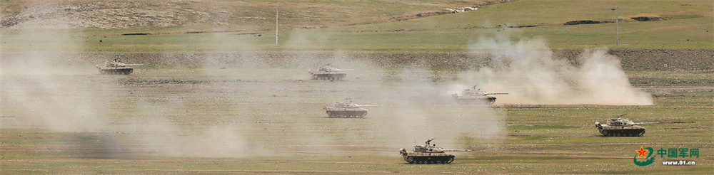 装甲突击力量发起进攻,战斗进入白热化。坦克引导步兵战车快速冲击,同时对“敌”碉堡和堑壕实施火力覆盖。演训场上,铁甲滚滚,炮火震天。