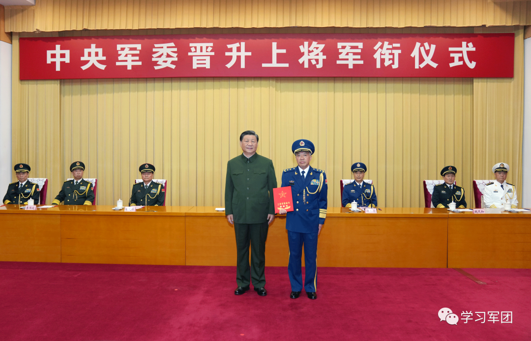 习近平颁发命令状并向晋衔的军官表示祝贺