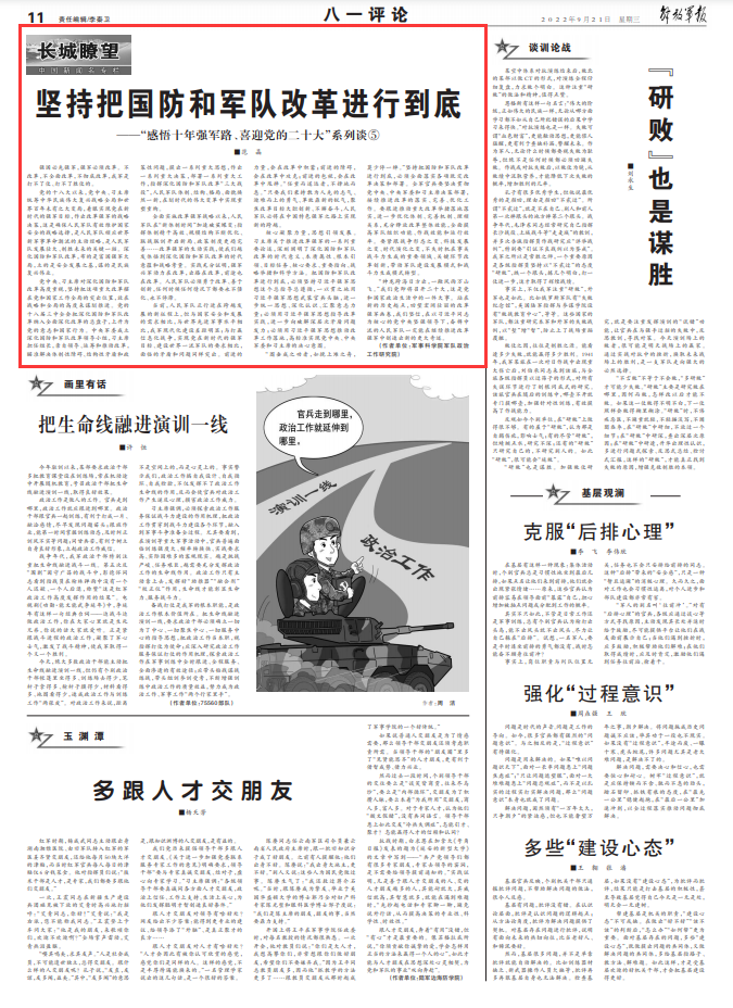 ——“感悟十年强军路、喜迎党的二十大”系列谈⑤