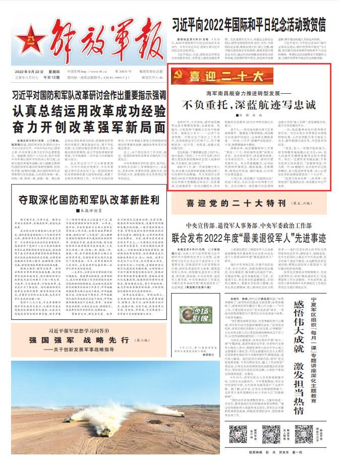 “南昌,是八一军旗升起的地方,曾有两艘英雄战舰以此为名;101,是人民海军首艘驱逐舰用过的光荣舷号。我们一定要传承英雄血脉,不辜负党和人民的重托。”该舰领导说,作为新一代101舰舰员,官兵始终牢记统帅嘱托,奋力推进转型发展,决心以更加优异的成绩迎接党的二十大召开。