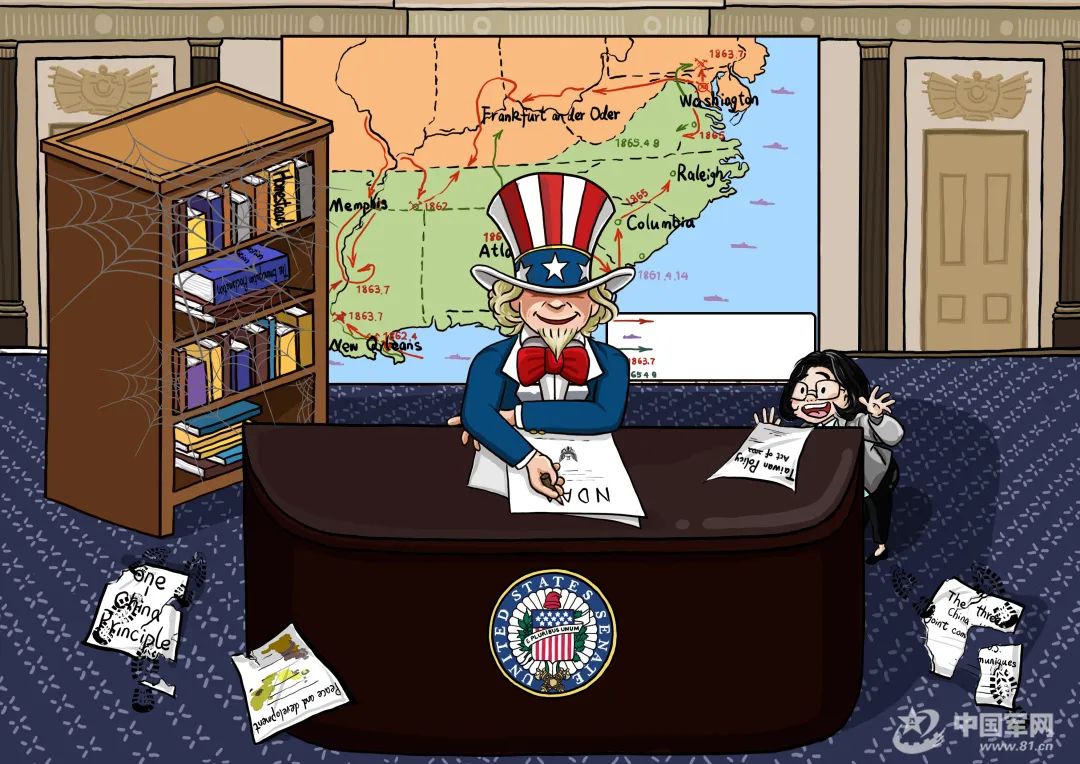 长期以来,美国背信弃义,严重违反一个中国原则(One-China principle)和中美三个联合公报(The three China-U.S. joint communiques)规定,为“台独”频频站台,鼓动支持民进党当局搞武力对抗、倚美谋“独”。言而无信、出尔反尔的美国政客们,实际上就是台海问题一切“麻烦”的始作俑者。