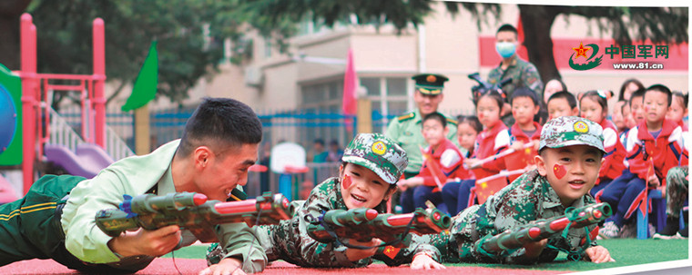 9月30日,武警工程大学学员在陕西师范大学附属幼儿园开展趣味国防教育活动。李 智摄