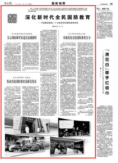 何雷:党的二十大报告提出“深化全民国防教育”的要求,我认为这是基于党的十八大以来全民国防教育得到加强的丰富实践提出来的。