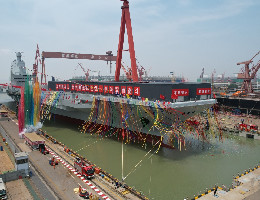 我国第三艘航空母舰下水命名仪式17日上午在中国船舶集团有限公司江南造船厂举行。
