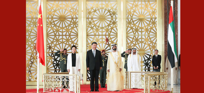 阿联酋阿布扎比王储穆罕默德和副总统兼总理穆罕默德20日在总统府大厅共同举行隆重盛大仪式,欢迎国家主席习近平对阿联酋进行国事访问。