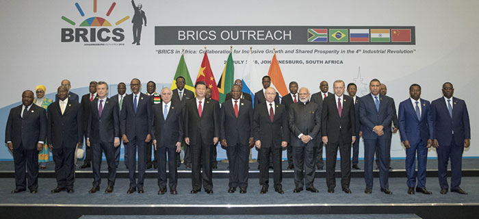 金砖国家领导人第十次会晤26日在南非约翰内斯堡举行。南非总统拉马福萨主持。中国国家主席习近平、巴西总统特梅尔、俄罗斯总统普京、印度总理莫迪出席。五国领导人围绕“金砖国家在非洲:在第四次工业革命中共谋包容增长和共同繁荣”主题,就金砖国家合作及共同关心的重大国际问题深入交换看法,达成广泛共识。