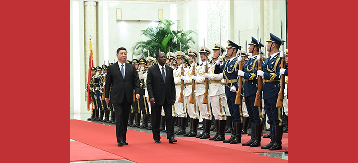 国家主席习近平30日上午在人民大会堂北大厅举行仪式,欢迎科特迪瓦共和国总统瓦塔拉对我国进行国事访问。