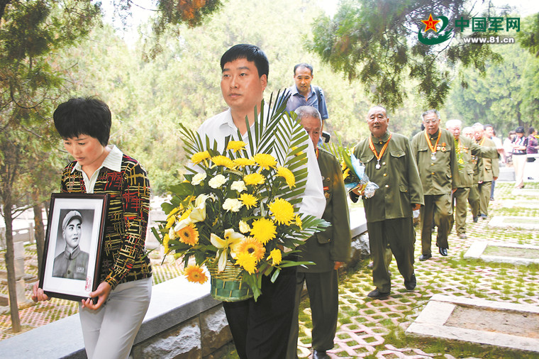 每临国庆,烈属们倍加思念为国捐躯的亲人。图为刘明福烈士的家人在老战士的陪同下前往刚找到的墓地祭奠。 李京进提供