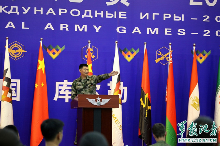 27日下午,中国陆军承办的“国际军事比赛-2017”召开新闻发布会,陆军政治工作部宣传局副局长、新闻发言人谭英帅上校就赛事筹备、比赛规则设置等方面问题回答了记者提问。罗兴仓摄