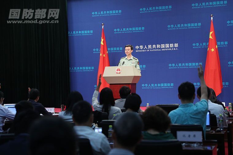 9月28日下午,国防部新闻局局长、国防部新闻发言人吴谦大校在国防部9月例行记者会上答记者问。 李晓伟 摄