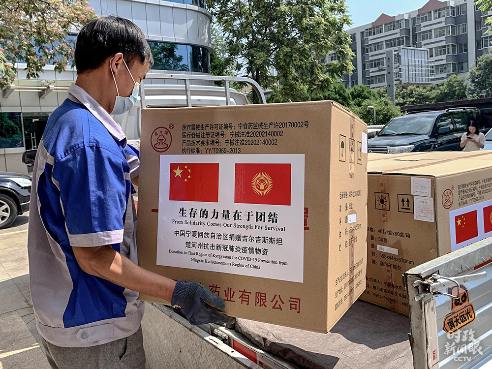 △今年7月份,宁夏回族自治区向吉尔吉斯斯坦楚河州捐赠了3万只一次性医用口罩。