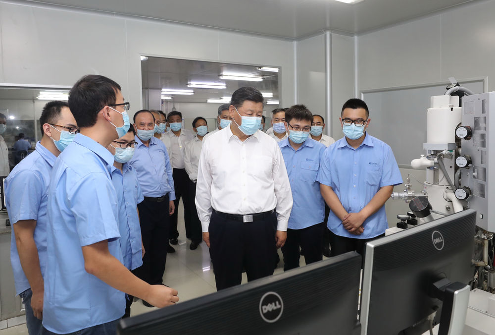 ↑2020年8月19日,习近平在安徽省马鞍山市中国宝武马钢集团考察调研。
