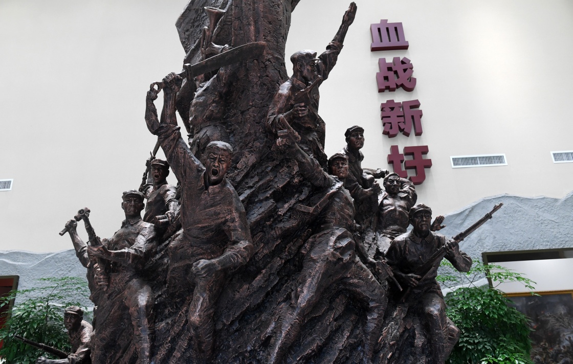 这是广西灌阳县新圩阻击战史实陈列馆内的雕像(4月27日摄)。新华社记者 陆波岸 摄