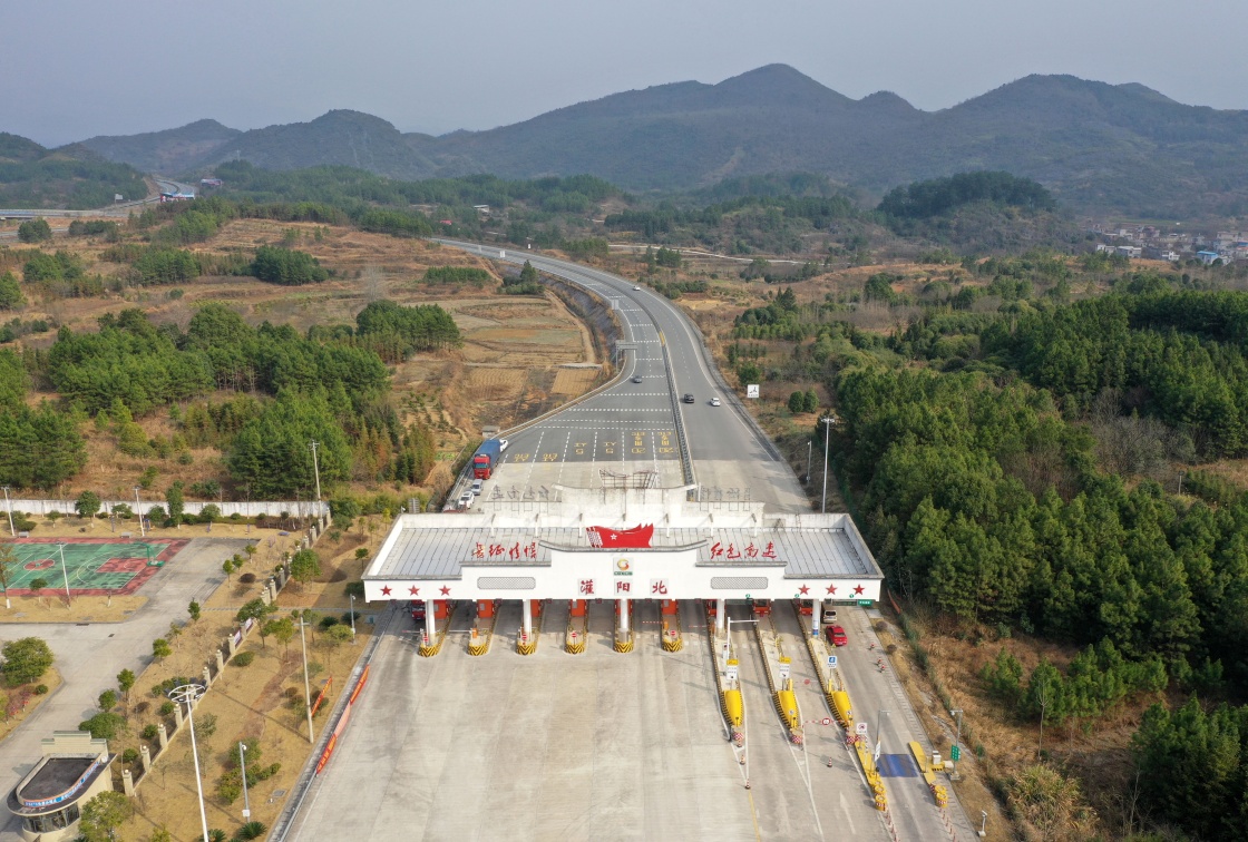 这是广西灌阳北高速公路收费站及周边道路(无人机照片,2月2日摄)。新华社记者 陆波岸 摄