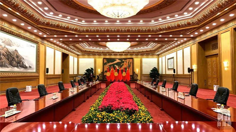 △中国与阿根廷两国元首会谈开始前的现场。(总台央视记者段德文拍摄)
