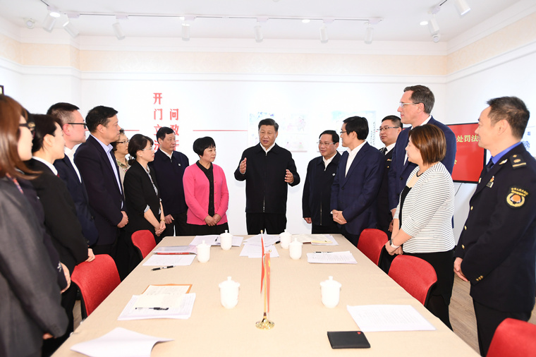 2019年11月2日,习近平总书记在上海长宁区虹桥街道古北市民中心,同正在参加立法意见征询的社区居民代表亲切交流。
