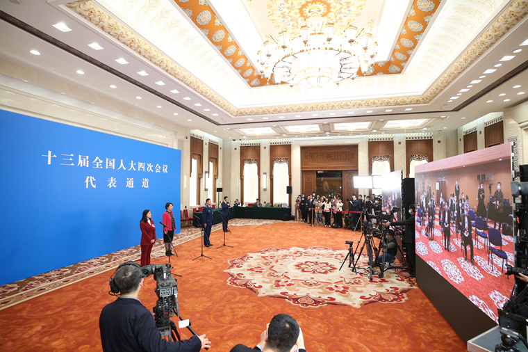 2021年3月5日,第十三届全国人民代表大会第四次会议举行首场“代表通道”采访活动。这是全国人大代表通过网络视频方式接受采访。