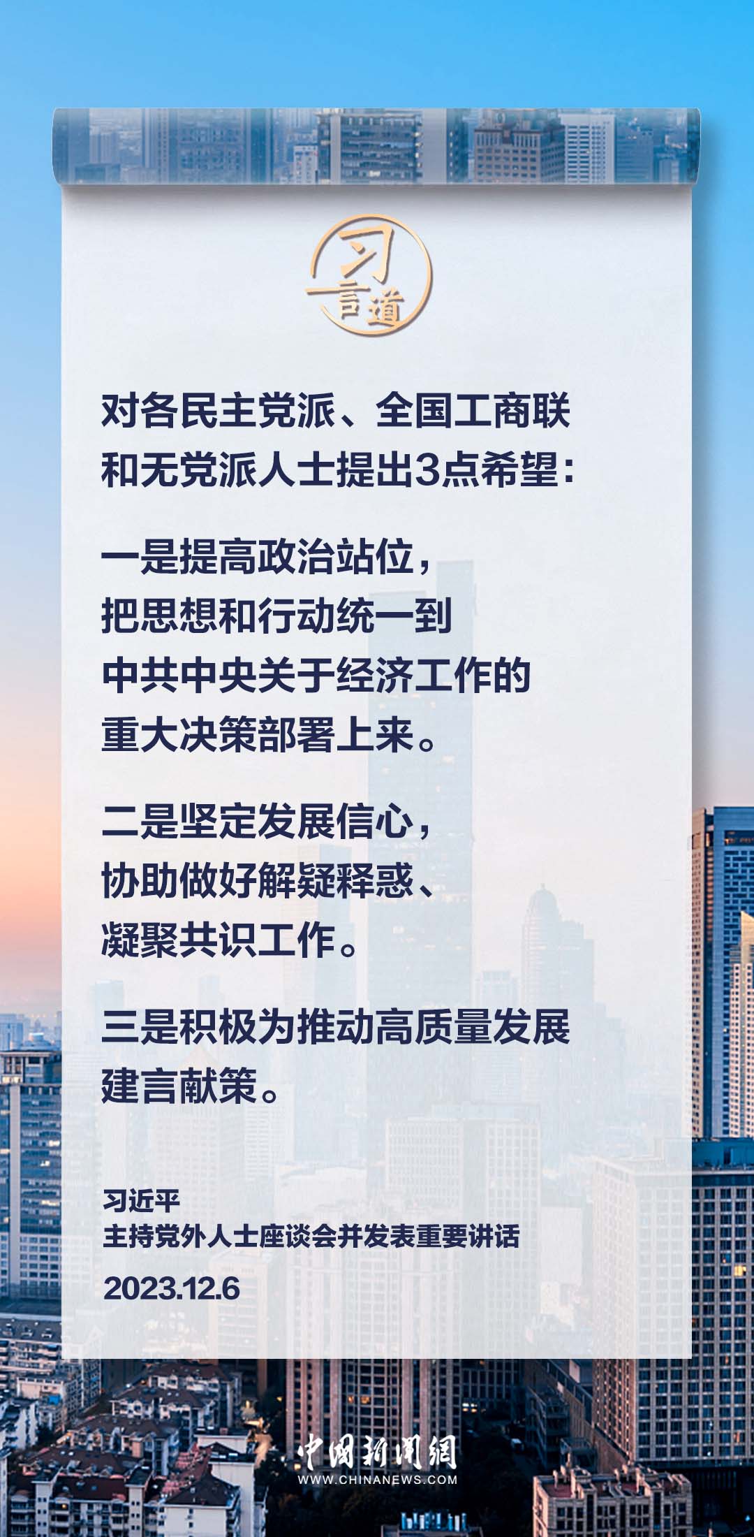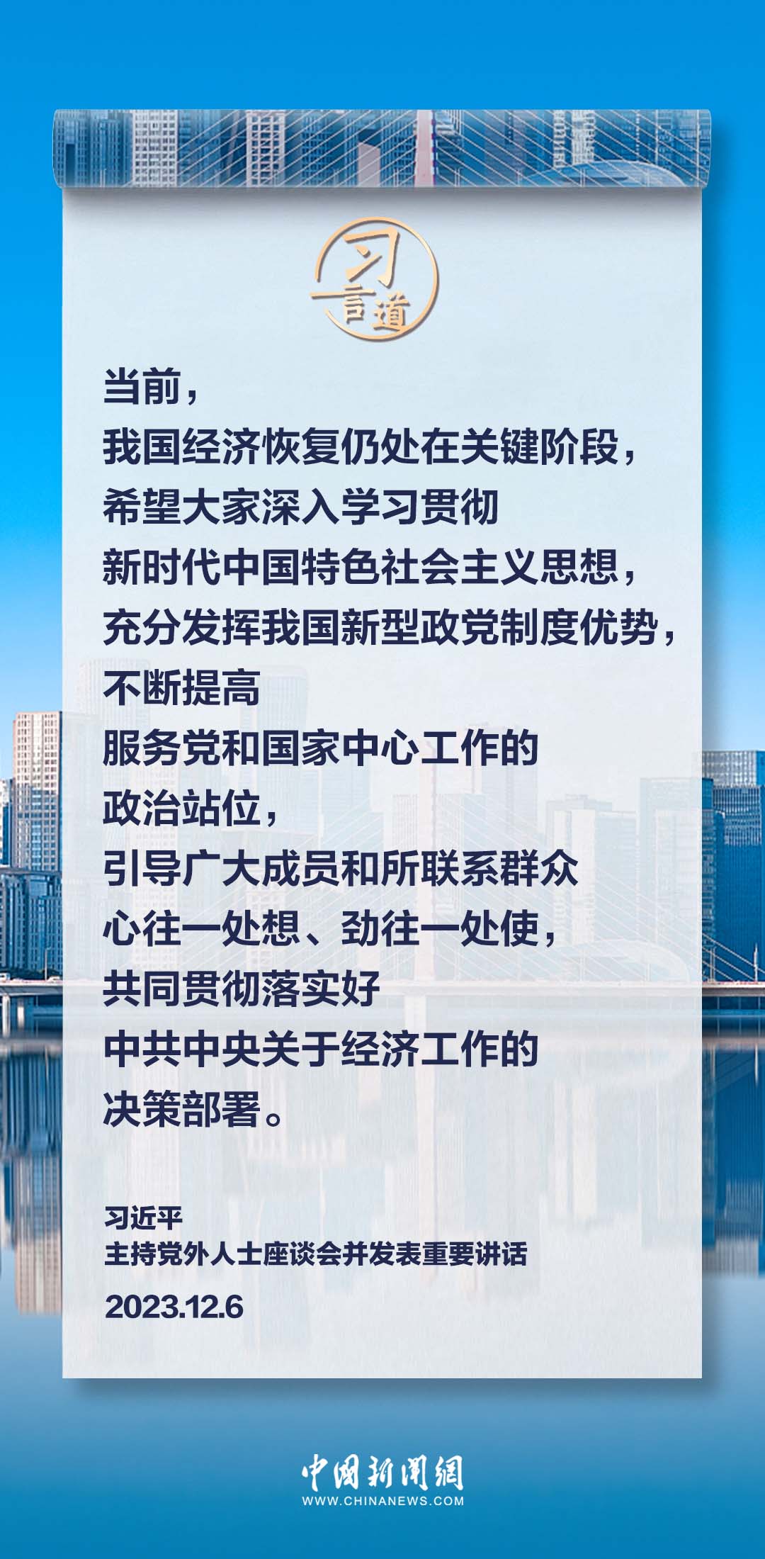 12月6日,中共中央在中南海召开党外人士座谈会,就今年经济形势和明年经济工作听取各民主党派中央、全国工商联负责人和无党派人士代表的意见和建议。中共中央总书记习近平主持座谈会并发表重要讲话。