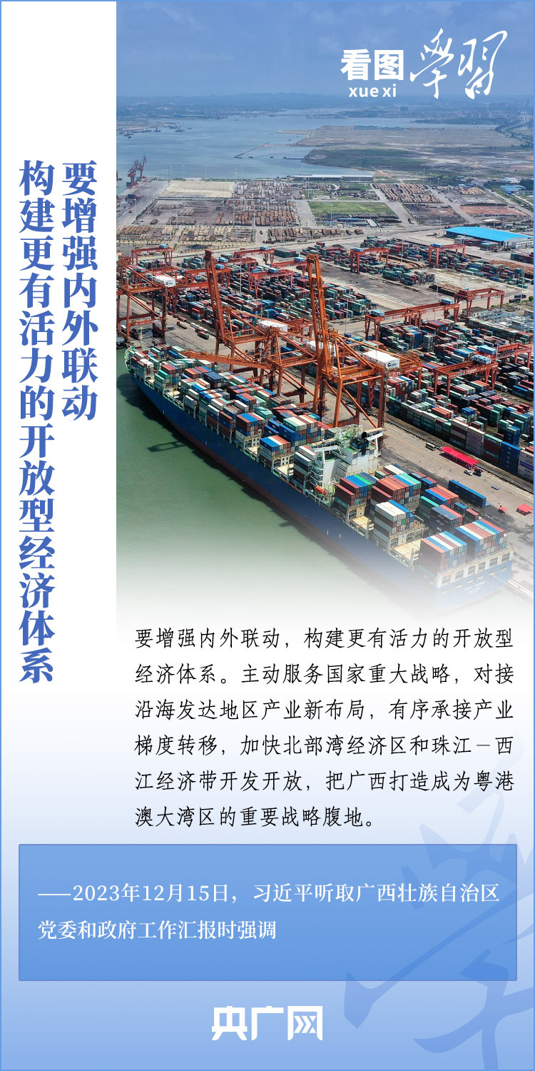 12月14日至15日,刚刚结束对越南进行国事访问的习近平总书记在广西考察并听取广西壮族自治区党委和政府工作汇报。总书记对广西发展提出殷切希望,强调广西要发挥自身优势,以铸牢中华民族共同体意识为主线,解放思想、创新求变,向海图强、开放发展,努力在推动边疆民族地区高质量发展上展现更大作为,奋力谱写中国式现代化广西篇章。一起来学习!