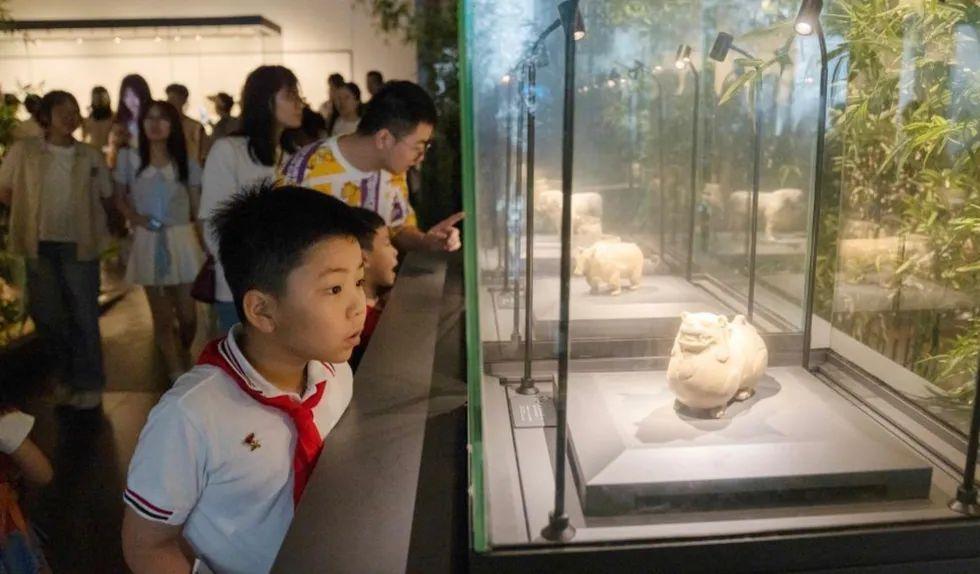 踏入博物馆,从东晋的俑群、南朝的青瓷莲花尊中,观众能感受到历史的温度;当志愿者们声情并茂地讲述1000多年前的历史时,观众也被带入到遥远的时空隧道中,与嵇康饮酒,与王羲之对话。