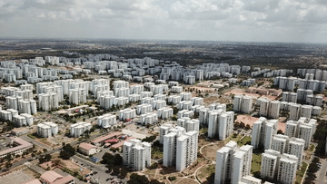 从首都罗安达市中心驱车向南18公里,一大片错落有致的高层住宅楼区映入眼帘,这是中企在当地承建的最大民生工程——凯兰巴新城。