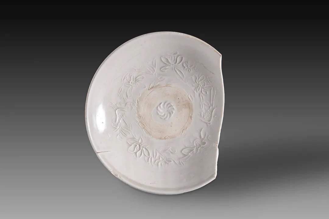 霍州窑出土的金代细白瓷印花浅盘(莲纹)。山西省考古研究院供图
