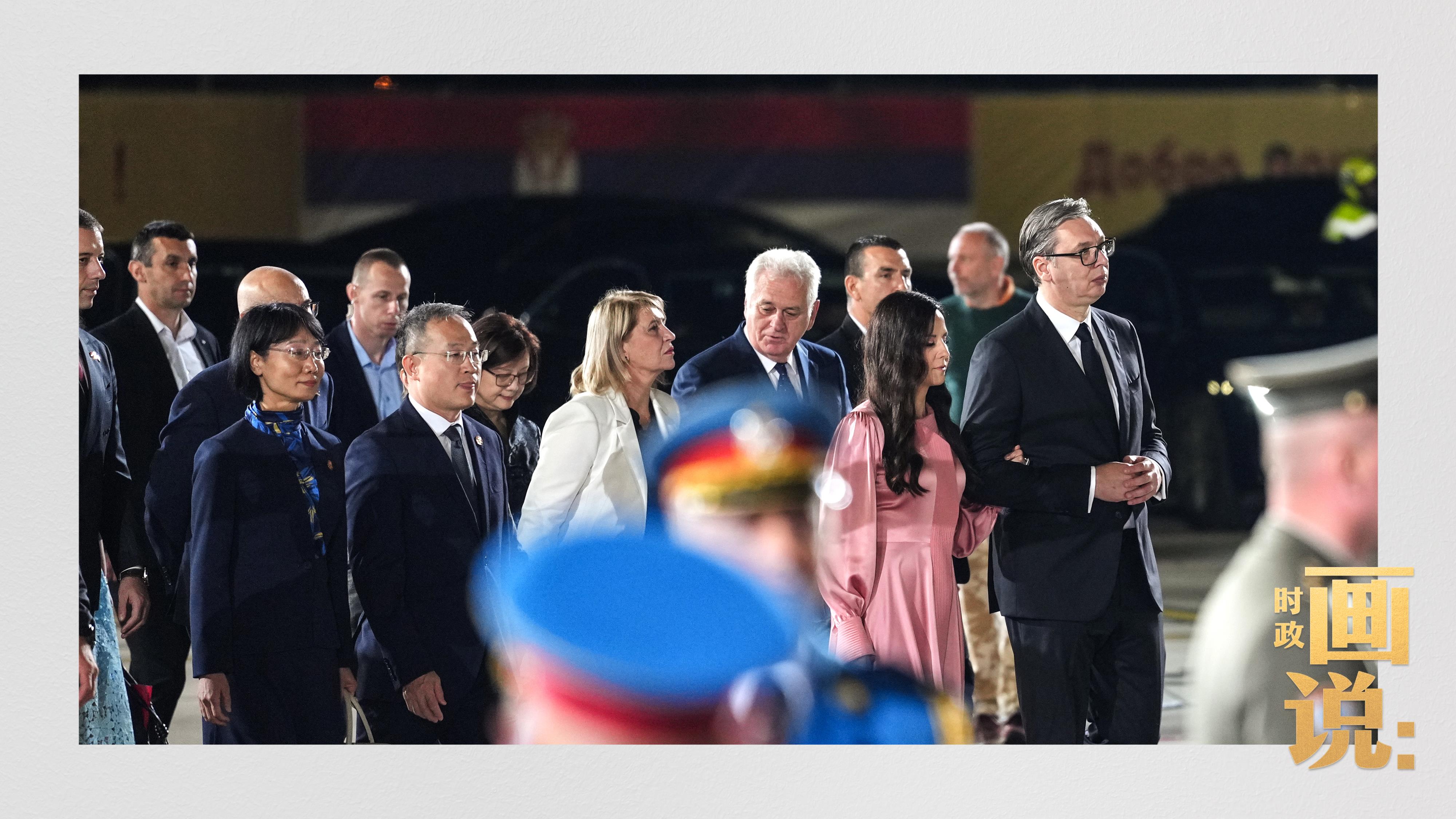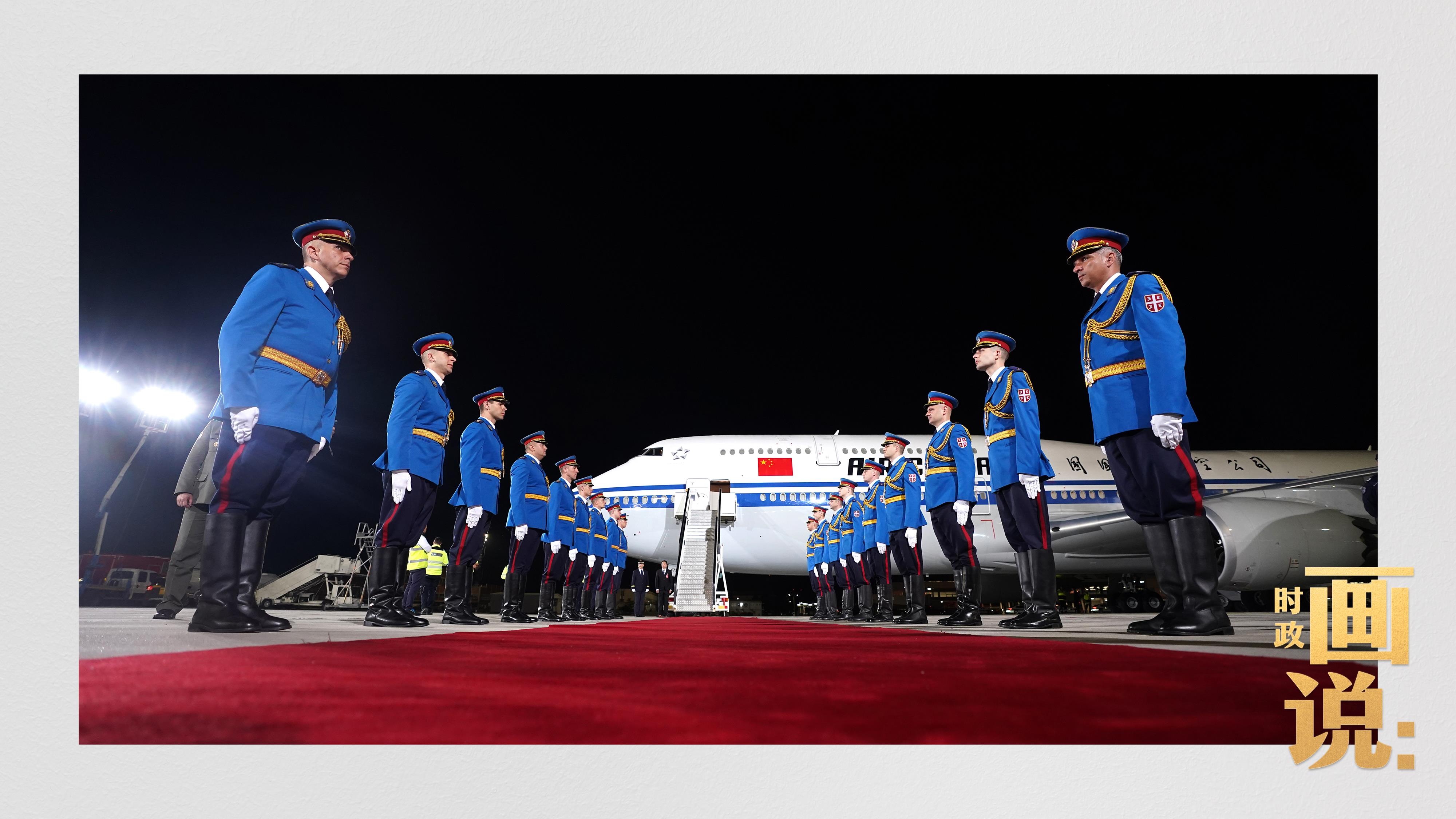 当地时间5月7日晚,国家主席习近平乘专机抵达贝尔格莱德,应邀对塞尔维亚进行国事访问。升空护航的战机、到机场迎候的武契奇总统夫妇等塞尔维亚国家政要,独具特色的机场迎宾仪式,鲜花、笑脸与少年,载歌载舞的盛装民众……
