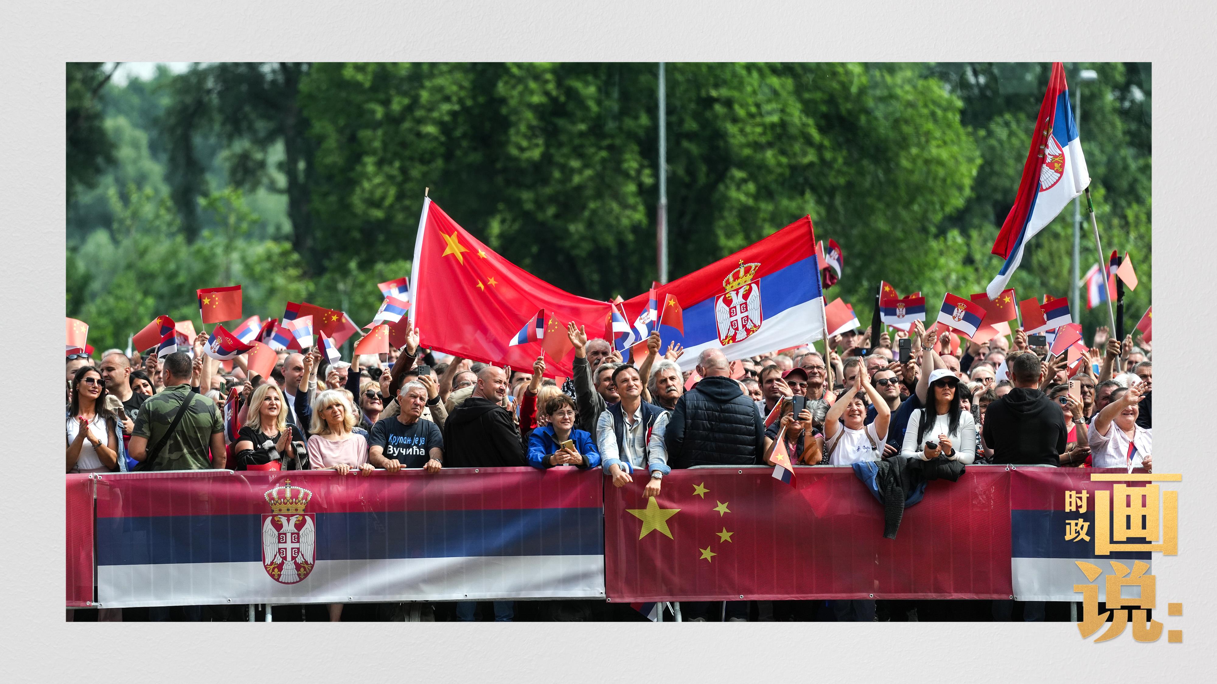 △当地时间5月8日上午,武契奇总统陪同习近平主席来到政府大厦平台。大厦广场上,一万五千名塞尔维亚民众挥舞中塞两国国旗,对习近平主席表示最热烈的欢迎。