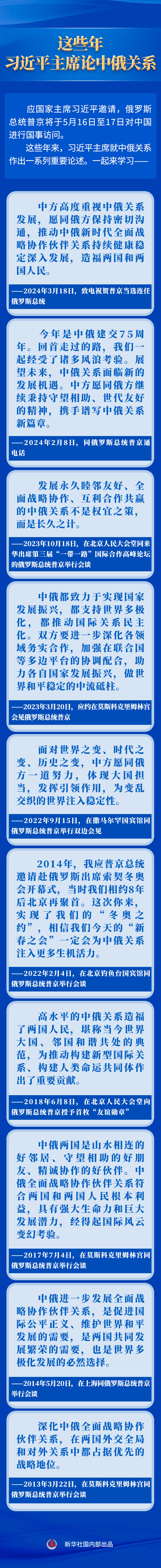 这些年,习近平主席论中俄关系
